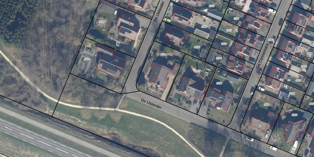 Het perceel waarop De IJslander 23 staat heeft een oppervlakte van 714 m². Dit is een groot perceel. De perceeloppervlakte wordt geregistreerd door het Kadaster. Gedetailleerde informatie over de maten van dit perceel kunt u vinden in het rapport Kadastrale kaart met maatvoering van De IJslander 23.