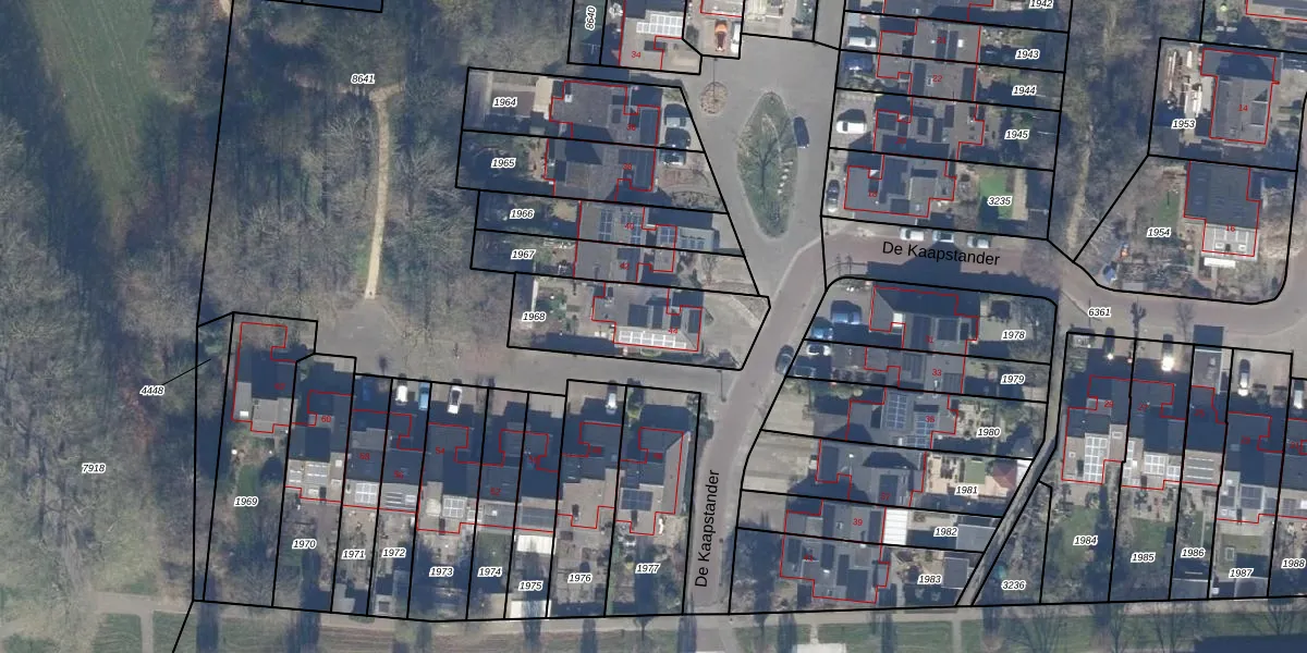 Het perceel waarop De Kaapstander 44 staat heeft een oppervlakte van 432 m². Dit is een groot perceel. De perceeloppervlakte wordt geregistreerd door het Kadaster. Gedetailleerde informatie over de maten van dit perceel kunt u vinden in het rapport Kadastrale kaart met maatvoering van De Kaapstander 44.