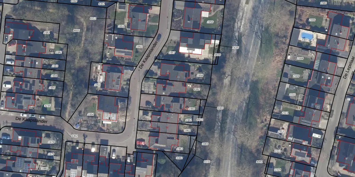 Het perceel waarop De Kaapstander 9 staat heeft een oppervlakte van 335 m². Dit is een groot perceel. De perceeloppervlakte wordt geregistreerd door het Kadaster. Gedetailleerde informatie over de maten van dit perceel kunt u vinden in het rapport Kadastrale kaart met maatvoering van De Kaapstander 9.