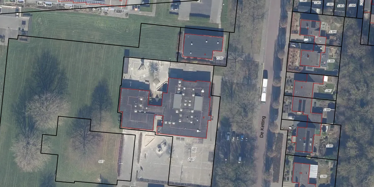 Het perceel waarop De Ketting 8 staat heeft een oppervlakte van 2620 m². Dit is een zeer groot perceel. De perceeloppervlakte wordt geregistreerd door het Kadaster. Gedetailleerde informatie over de maten van dit perceel kunt u vinden in het rapport Kadastrale kaart met maatvoering van De Ketting 8.