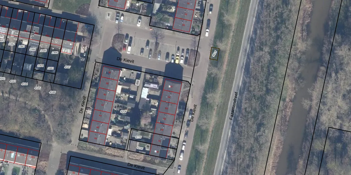 Het perceel waarop De Kievit 22 staat heeft een oppervlakte van 2187 m². Dit is een zeer groot perceel. De perceeloppervlakte wordt geregistreerd door het Kadaster. Gedetailleerde informatie over de maten van dit perceel kunt u vinden in het rapport Kadastrale kaart met maatvoering van De Kievit 22.