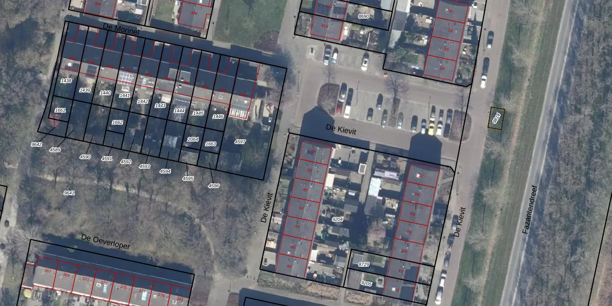 Het perceel waarop De Kievit 36 staat heeft een oppervlakte van 2187 m². Dit is een zeer groot perceel. De perceeloppervlakte wordt geregistreerd door het Kadaster. Gedetailleerde informatie over de maten van dit perceel kunt u vinden in het rapport Kadastrale kaart met maatvoering van De Kievit 36.
