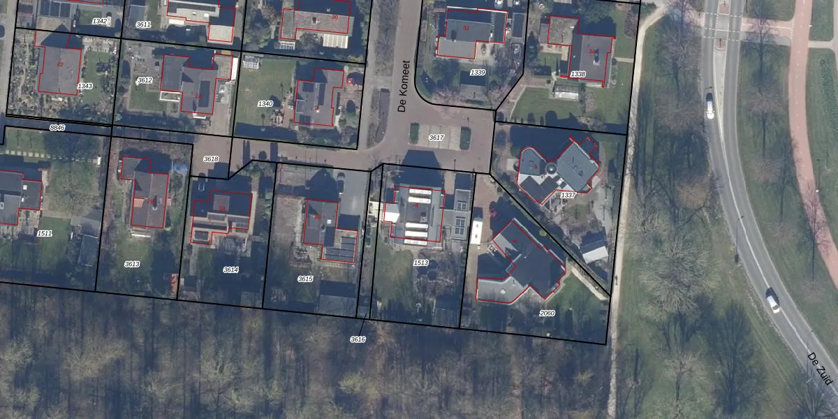 Gebruik de zoekbalk of klik op een perceel voor informatie over de adressen binnen dit perceel.