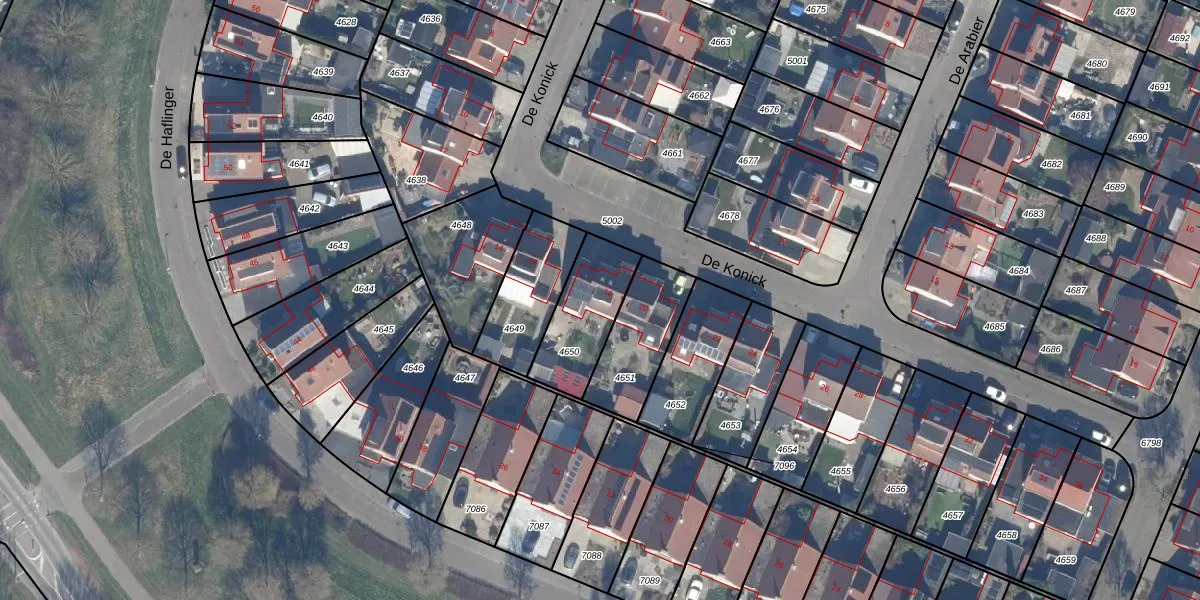 Het perceel waarop De Konick 18 staat heeft een oppervlakte van 260 m². Dit is een middelgroot perceel. De perceeloppervlakte wordt geregistreerd door het Kadaster. Gedetailleerde informatie over de maten van dit perceel kunt u vinden in het rapport Kadastrale kaart met maatvoering van De Konick 18.