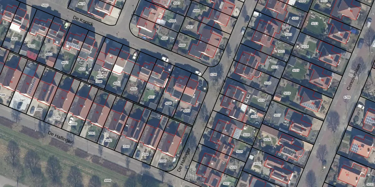 Het perceel waarop De Konick 36 staat heeft een oppervlakte van 293 m². Dit is een middelgroot perceel. De perceeloppervlakte wordt geregistreerd door het Kadaster. Gedetailleerde informatie over de maten van dit perceel kunt u vinden in het rapport Kadastrale kaart met maatvoering van De Konick 36.