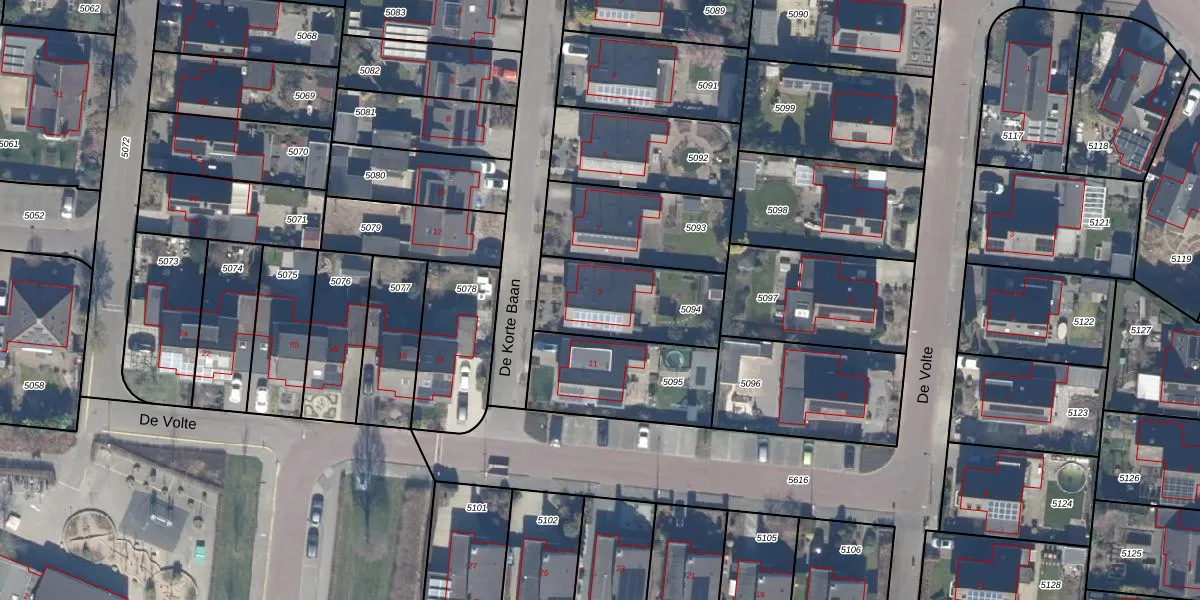 Het perceel waarop De Korte Baan 9 staat heeft een oppervlakte van 390 m². Dit is een groot perceel. De perceeloppervlakte wordt geregistreerd door het Kadaster. Gedetailleerde informatie over de maten van dit perceel kunt u vinden in het rapport Kadastrale kaart met maatvoering van De Korte Baan 9.