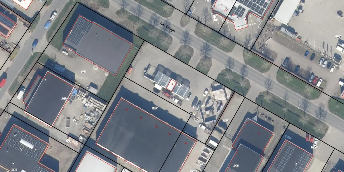 Het perceel waarop De Linge 9 staat heeft een oppervlakte van 1631 m². Dit is een zeer groot perceel. De perceeloppervlakte wordt geregistreerd door het Kadaster. Gedetailleerde informatie over de maten van dit perceel kunt u vinden in het rapport Kadastrale kaart met maatvoering van De Linge 9.