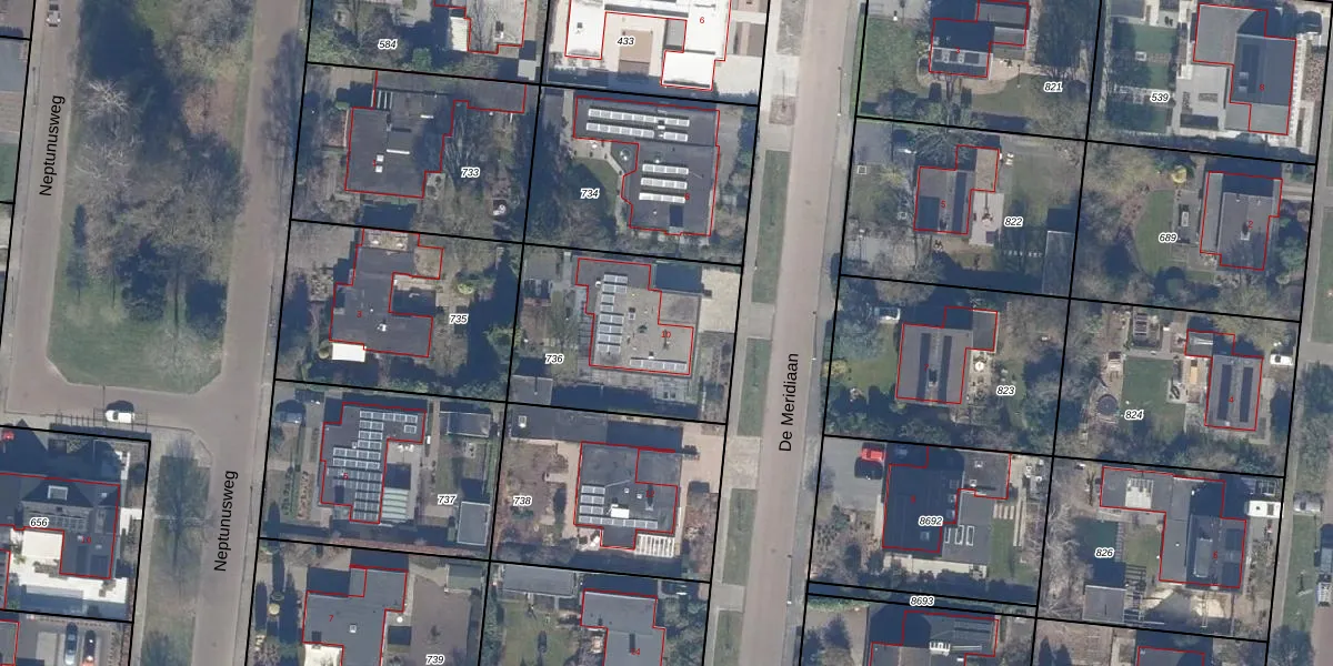 Het perceel waarop De Meridiaan 10 staat heeft een oppervlakte van 793 m². Dit is een groot perceel. De perceeloppervlakte wordt geregistreerd door het Kadaster. Gedetailleerde informatie over de maten van dit perceel kunt u vinden in het rapport Kadastrale kaart met maatvoering van De Meridiaan 10.