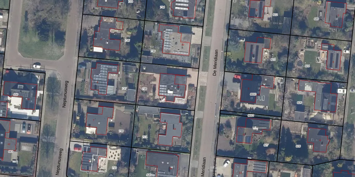 Het perceel waarop De Meridiaan 12 staat heeft een oppervlakte van 793 m². Dit is een groot perceel. De perceeloppervlakte wordt geregistreerd door het Kadaster. Gedetailleerde informatie over de maten van dit perceel kunt u vinden in het rapport Kadastrale kaart met maatvoering van De Meridiaan 12.