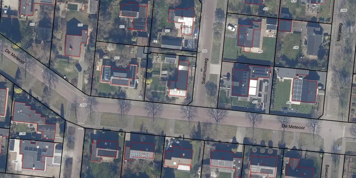 Het perceel waarop De Meteoor 15 staat heeft een oppervlakte van 752 m². Dit is een groot perceel. De perceeloppervlakte wordt geregistreerd door het Kadaster. Gedetailleerde informatie over de maten van dit perceel kunt u vinden in het rapport Kadastrale kaart met maatvoering van De Meteoor 15.