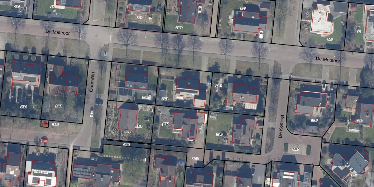 Het perceel waarop De Meteoor 28-A staat heeft een oppervlakte van 600 m². Dit is een groot perceel. De perceeloppervlakte wordt geregistreerd door het Kadaster. Gedetailleerde informatie over de maten van dit perceel kunt u vinden in het rapport Kadastrale kaart met maatvoering van De Meteoor 28-A.