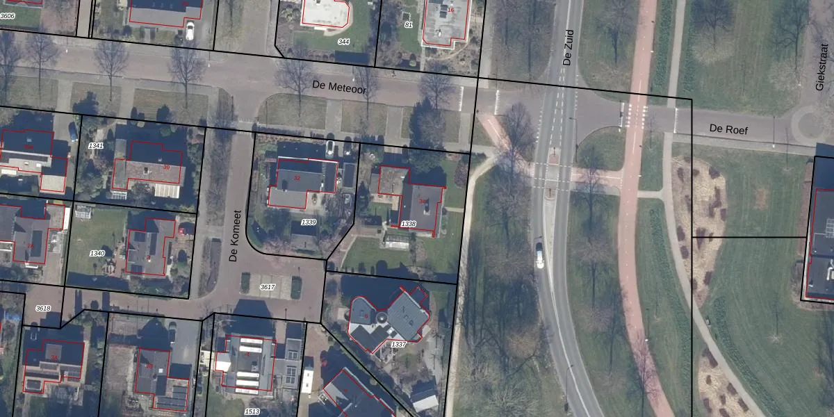 Het perceel waarop De Meteoor 34 staat heeft een oppervlakte van 873 m². Dit is een groot perceel. De perceeloppervlakte wordt geregistreerd door het Kadaster. Gedetailleerde informatie over de maten van dit perceel kunt u vinden in het rapport Kadastrale kaart met maatvoering van De Meteoor 34.