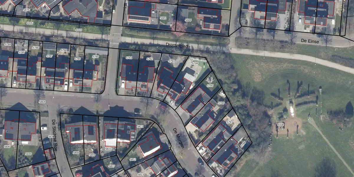 Het perceel waarop De Morgen 50 staat heeft een oppervlakte van 388 m². Dit is een groot perceel. De perceeloppervlakte wordt geregistreerd door het Kadaster. Gedetailleerde informatie over de maten van dit perceel kunt u vinden in het rapport Kadastrale kaart met maatvoering van De Morgen 50.