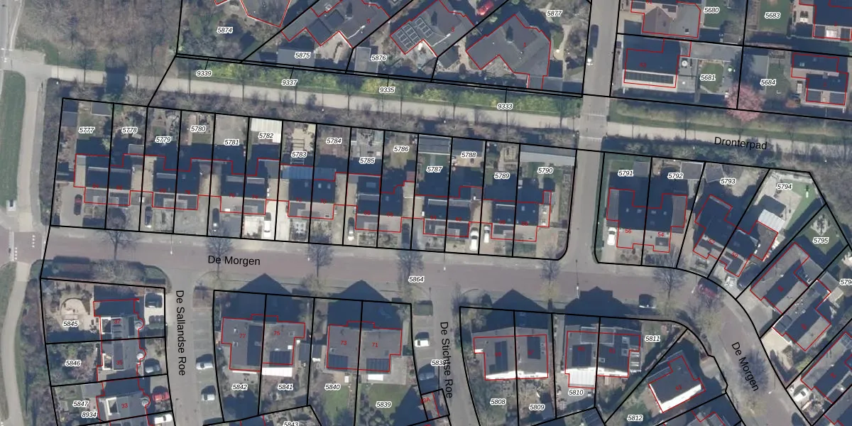 Het perceel waarop De Morgen 64 staat heeft een oppervlakte van 217 m². Dit is een middelgroot perceel. De perceeloppervlakte wordt geregistreerd door het Kadaster. Gedetailleerde informatie over de maten van dit perceel kunt u vinden in het rapport Kadastrale kaart met maatvoering van De Morgen 64.