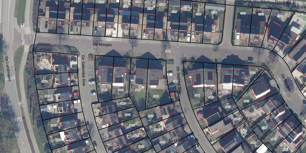 De Morgen 71 is gelegen op kadastraal perceel DTN01A5839. Deze kadastrale aanduiding is uniek en wordt gebruikt door het Kadaster om eigendomsrechten en andere zakelijke rechten vast te leggen. Het perceel maakt onderdeel uit van de kadastrale gemeente Dronten.