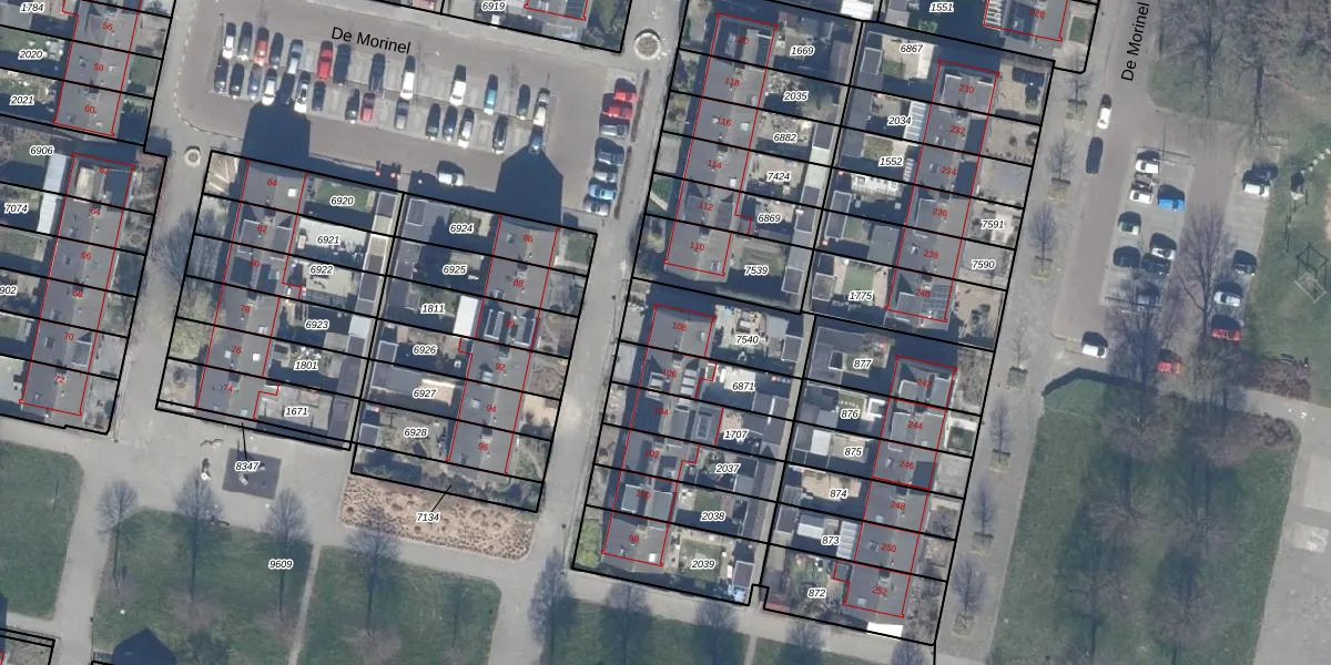 Het perceel waarop De Morinel 108 staat heeft een oppervlakte van 271 m². Dit is een middelgroot perceel. De perceeloppervlakte wordt geregistreerd door het Kadaster. Gedetailleerde informatie over de maten van dit perceel kunt u vinden in het rapport Kadastrale kaart met maatvoering van De Morinel 108.