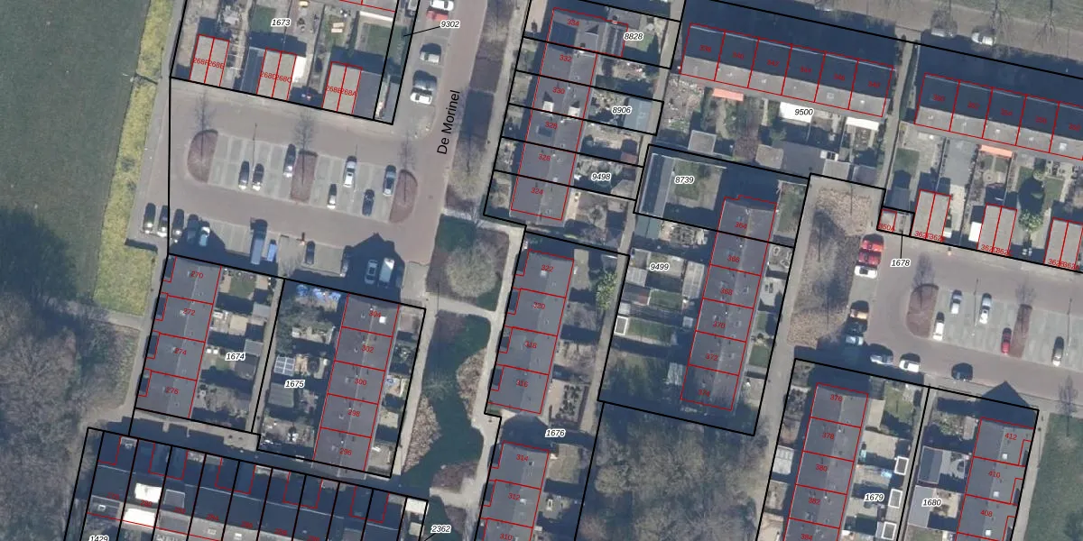 Het perceel waarop De Morinel 322 staat heeft een oppervlakte van 1315 m². Dit is een zeer groot perceel. De perceeloppervlakte wordt geregistreerd door het Kadaster. Gedetailleerde informatie over de maten van dit perceel kunt u vinden in het rapport Kadastrale kaart met maatvoering van De Morinel 322.