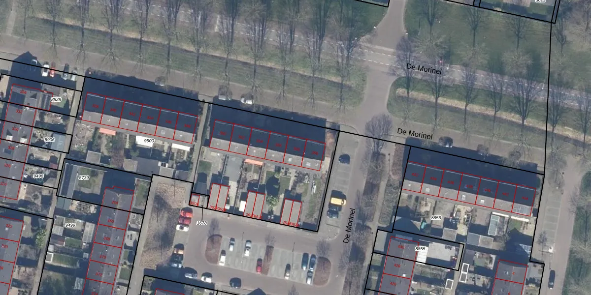 De Morinel 358 is gelegen op kadastraal perceel DTN01A9500. Deze kadastrale aanduiding is uniek en wordt gebruikt door het Kadaster om eigendomsrechten en andere zakelijke rechten vast te leggen. Het perceel maakt onderdeel uit van de kadastrale gemeente Dronten.
