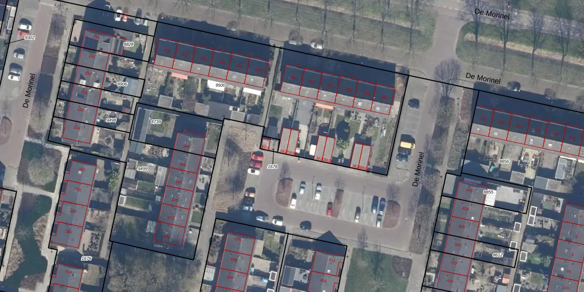 De Morinel 362-E is gelegen op kadastraal perceel DTN01A9500. Deze kadastrale aanduiding is uniek en wordt gebruikt door het Kadaster om eigendomsrechten en andere zakelijke rechten vast te leggen. Het perceel maakt onderdeel uit van de kadastrale gemeente Dronten.
