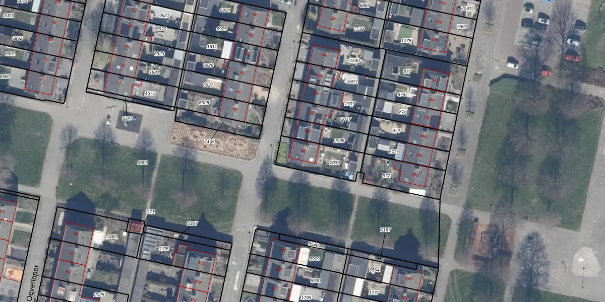 Het adres is gelegen op perceel 2039 in de sectie A en de kadastrale gemeente Dronten. De kadastrale aanduiding is aldus DTN01-A-2039. De gemiddelde perceelgrootte in Dronten is 1,8 ha. Dit perceel is kleiner: de perceeloppervlakte bedraagt 271 m². De grootste perceeloppervlakte in de kadastrale gemeente is 25,03 km². De kleinste oppervlakte bedraagt 0 m². Er zijn geen andere adressen aanwezig op het perceel. De laatste wijziging in het de Basisregistratie Kadaster (BRK) was op 01-03-2007.
