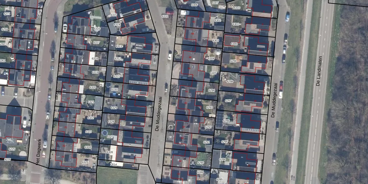 De Muddegezaai 42 is gelegen op kadastraal perceel DTN01A6294. Deze kadastrale aanduiding is uniek en wordt gebruikt door het Kadaster om eigendomsrechten en andere zakelijke rechten vast te leggen. Het perceel maakt onderdeel uit van de kadastrale gemeente Dronten.