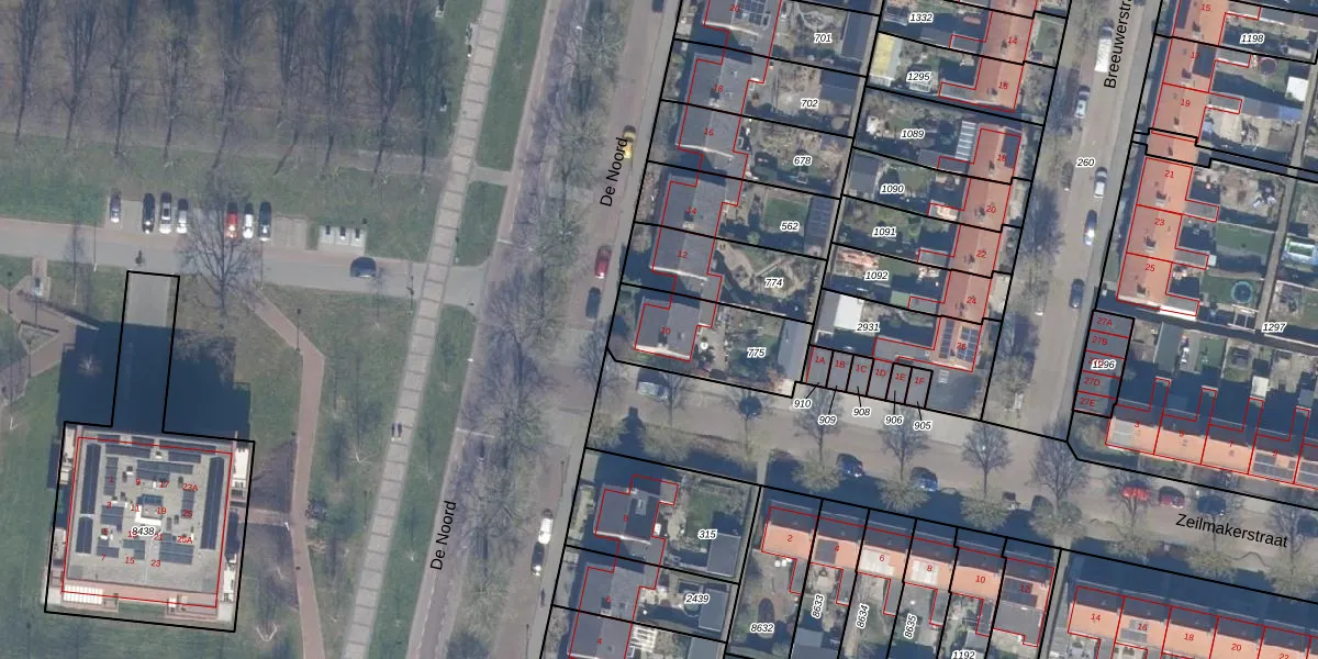 Het perceel waarop De Noord 10 staat heeft een oppervlakte van 351 m². Dit is een groot perceel. De perceeloppervlakte wordt geregistreerd door het Kadaster. Gedetailleerde informatie over de maten van dit perceel kunt u vinden in het rapport Kadastrale kaart met maatvoering van De Noord 10.