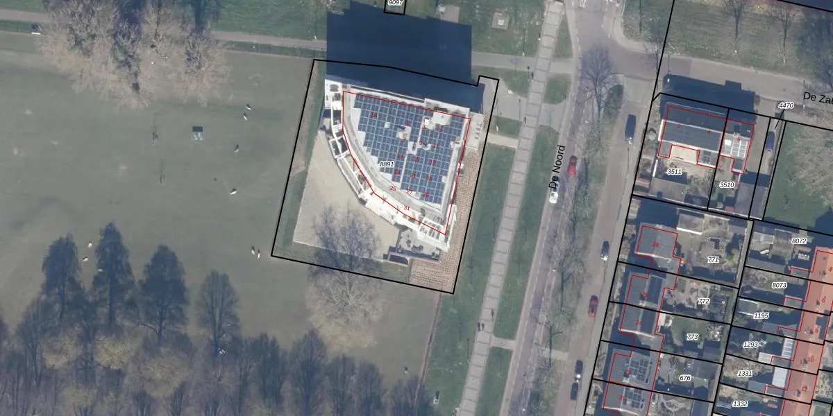 Het perceel waarop De Noord 15 staat heeft een oppervlakte van 2225 m². Dit is een zeer groot perceel. De perceeloppervlakte wordt geregistreerd door het Kadaster. Gedetailleerde informatie over de maten van dit perceel kunt u vinden in het rapport Kadastrale kaart met maatvoering van De Noord 15.