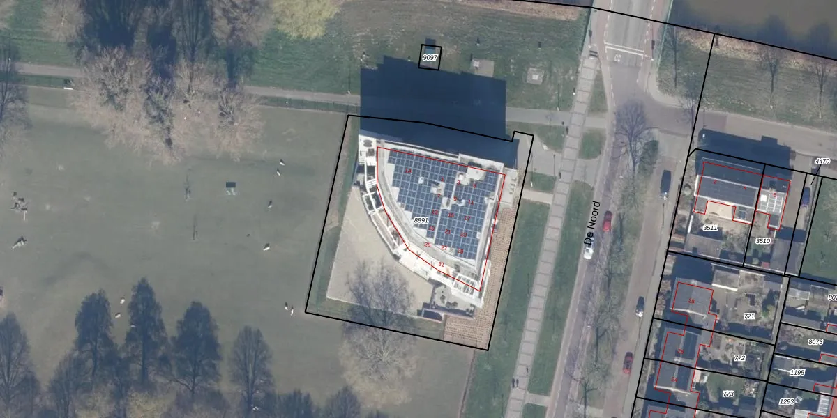 Het perceel waarop De Noord 19 staat heeft een oppervlakte van 2225 m². Dit is een zeer groot perceel. De perceeloppervlakte wordt geregistreerd door het Kadaster. Gedetailleerde informatie over de maten van dit perceel kunt u vinden in het rapport Kadastrale kaart met maatvoering van De Noord 19.