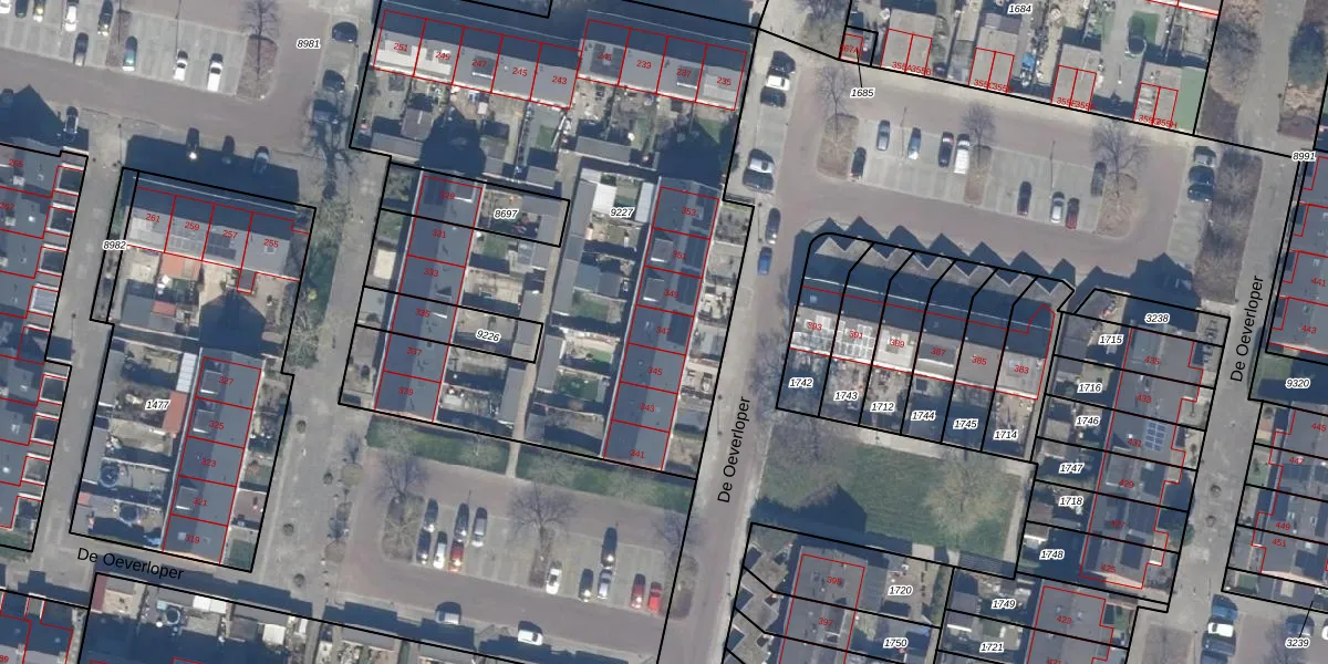 De Oeverloper 347 is gelegen op kadastraal perceel DTN01A9227. Deze kadastrale aanduiding is uniek en wordt gebruikt door het Kadaster om eigendomsrechten en andere zakelijke rechten vast te leggen. Het perceel maakt onderdeel uit van de kadastrale gemeente Dronten.