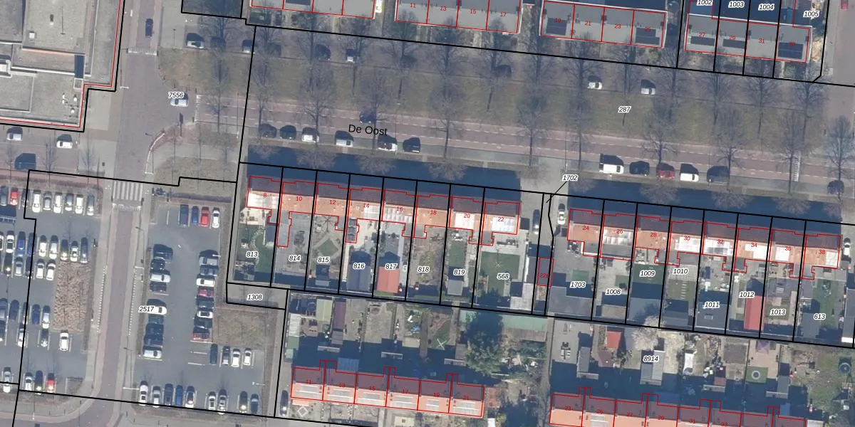 Het perceel waarop De Oost 18 staat heeft een oppervlakte van 225 m². Dit is een middelgroot perceel. De perceeloppervlakte wordt geregistreerd door het Kadaster. Gedetailleerde informatie over de maten van dit perceel kunt u vinden in het rapport Kadastrale kaart met maatvoering van De Oost 18.