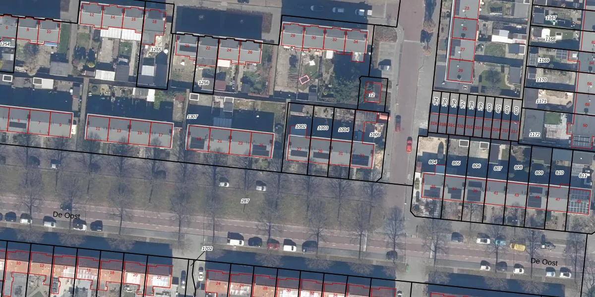 Het perceel waarop De Oost 27 staat heeft een oppervlakte van 209 m². Dit is een middelgroot perceel. De perceeloppervlakte wordt geregistreerd door het Kadaster. Gedetailleerde informatie over de maten van dit perceel kunt u vinden in het rapport Kadastrale kaart met maatvoering van De Oost 27.