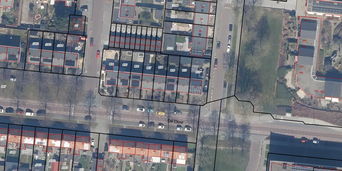 Gebruik de zoekbalk of klik op een perceel voor informatie over de adressen binnen dit perceel.