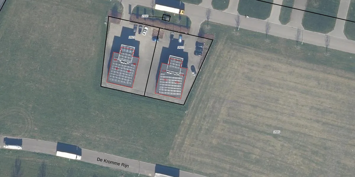 Het perceel waarop het adres ligt is DTN01-K-2622. De afkorting 'DTN01' staat voor kadastrale gemeente Dronten. De gemiddelde perceelgrootte in Dronten is 1,8 ha. Dit perceel is kleiner: de perceeloppervlakte bedraagt 1061 m². Het grootste perceel in de kadastrale gemeente is 25,03 km². Het kleinste perceel heeft een oppervlakte van 0 m². Op het perceel zijn 4 adressen aanwezig. De huidige grenzen van het perceel zijn digitaal in de Basisregistratie Kadaster (BRK) geregistreerd op 14-11-2011.