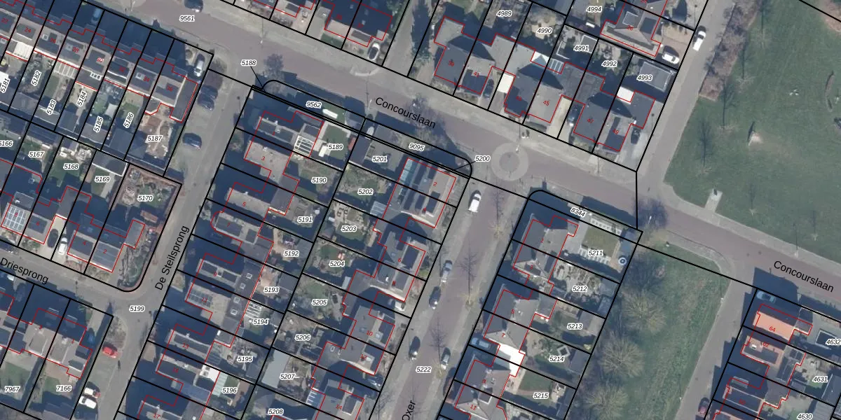 Het perceel waarop het adres ligt is DTN01-A-5202. De afkorting 'DTN01' staat voor kadastrale gemeente Dronten. Het perceel is 268 m² groot. Dat is kleiner dan de gemiddelde perceeloppervlakte in Dronten, dat op 1,8 ha ligt. Het kleinste perceel in de kadastrale gemeente is 0 m² groot. De grootste perceeloppervlakte is 25,03 km². Er zijn geen andere adressen aanwezig op het perceel. In de Basisregistratie Kadaster (BRK) werden de grenzen van het perceel geregistreerd op 20-08-1997.