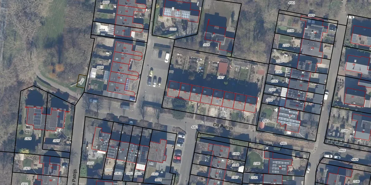 Het perceel waarop De Patrijs 32 staat heeft een oppervlakte van 1767 m². Dit is een zeer groot perceel. De perceeloppervlakte wordt geregistreerd door het Kadaster. Gedetailleerde informatie over de maten van dit perceel kunt u vinden in het rapport Kadastrale kaart met maatvoering van De Patrijs 32.