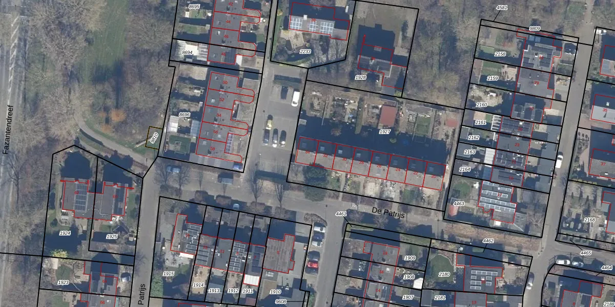 Het perceel waarop De Patrijs 34 staat heeft een oppervlakte van 1767 m². Dit is een zeer groot perceel. De perceeloppervlakte wordt geregistreerd door het Kadaster. Gedetailleerde informatie over de maten van dit perceel kunt u vinden in het rapport Kadastrale kaart met maatvoering van De Patrijs 34.