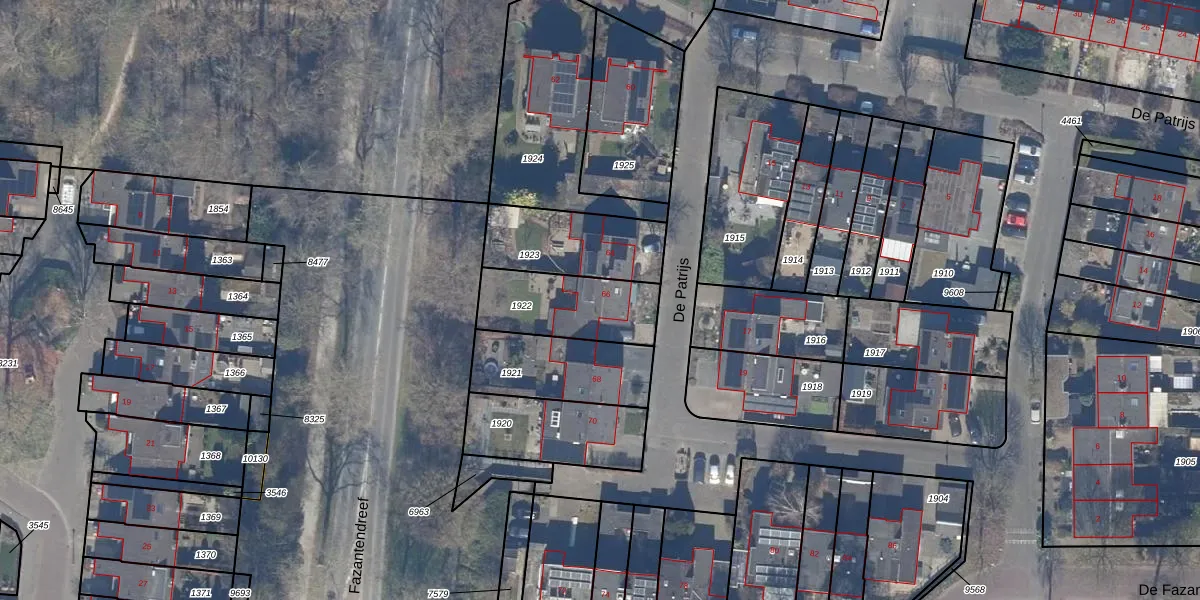 Het perceel waarop De Patrijs 66 staat heeft een oppervlakte van 315 m². Dit is een groot perceel. De perceeloppervlakte wordt geregistreerd door het Kadaster. Gedetailleerde informatie over de maten van dit perceel kunt u vinden in het rapport Kadastrale kaart met maatvoering van De Patrijs 66.