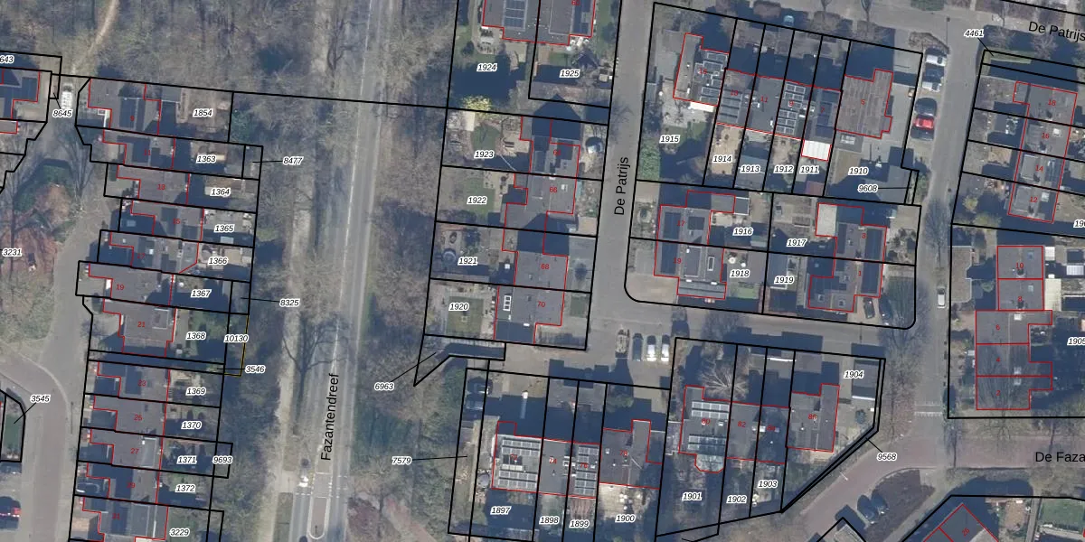 Het perceel waarop De Patrijs 68 staat heeft een oppervlakte van 315 m². Dit is een groot perceel. De perceeloppervlakte wordt geregistreerd door het Kadaster. Gedetailleerde informatie over de maten van dit perceel kunt u vinden in het rapport Kadastrale kaart met maatvoering van De Patrijs 68.
