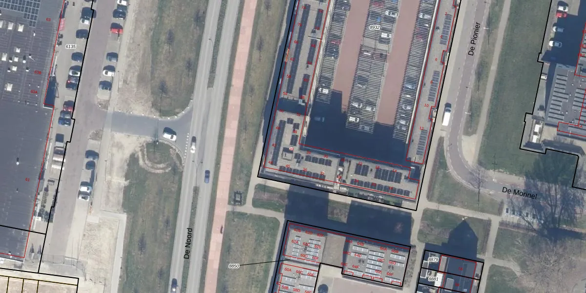 Het adres is gelegen op perceel 8932 in de sectie A en de kadastrale gemeente Dronten. De kadastrale aanduiding is aldus DTN01-A-8932. Het perceel is kleiner dan gemiddeld in Dronten. Het perceel is 5410 m² groot, terwijl het gemiddelde ligt op 1,8 ha. Het grootste perceel in de kadastrale gemeente is 25,03 km². Het kleinste perceel heeft een oppervlakte van 0 m². Op het perceel liggen in totaal 59 adressen. In de Basisregistratie Kadaster (BRK) werden de grenzen van het perceel geregistreerd op 18-01-2021.