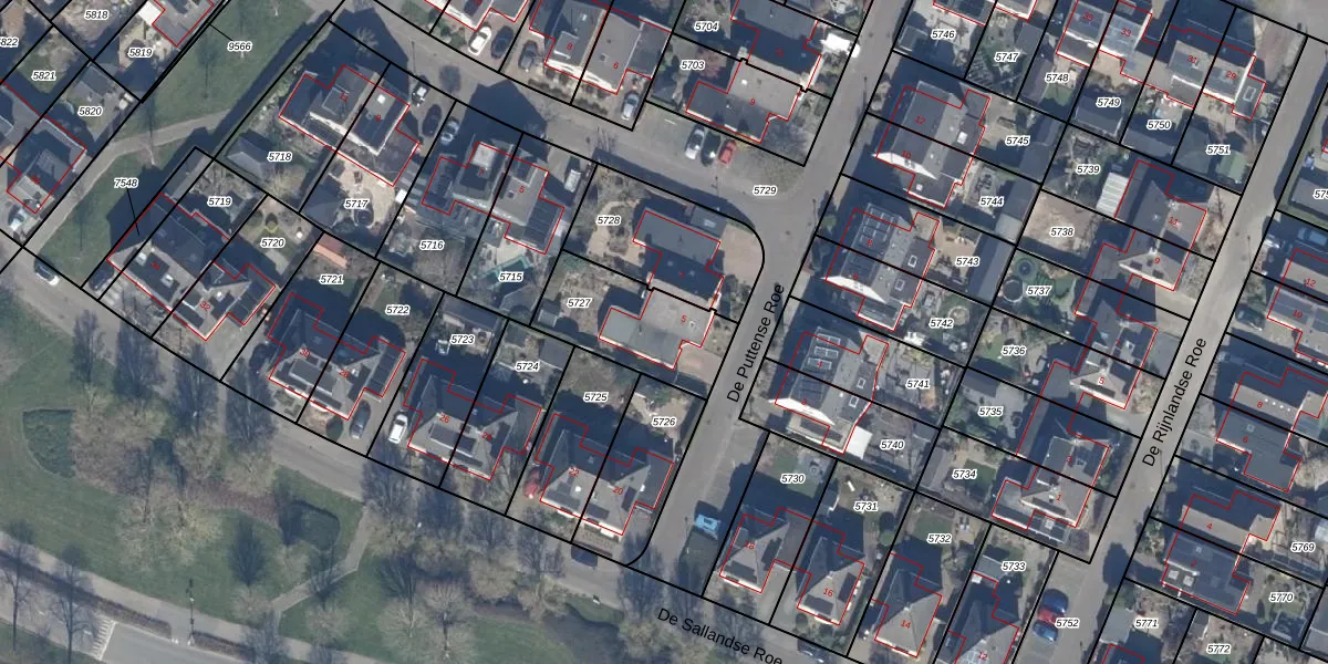 Het perceel waarop De Puttense Roe 5 staat heeft een oppervlakte van 365 m². Dit is een groot perceel. De perceeloppervlakte wordt geregistreerd door het Kadaster. Gedetailleerde informatie over de maten van dit perceel kunt u vinden in het rapport Kadastrale kaart met maatvoering van De Puttense Roe 5.