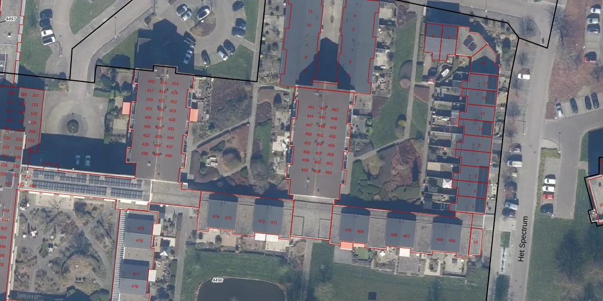 Het perceel waarop De Regenboog 455 staat heeft een oppervlakte van 2,8 ha. Dit is een zeer groot perceel. De perceeloppervlakte wordt geregistreerd door het Kadaster. Gedetailleerde informatie over de maten van dit perceel kunt u vinden in het rapport Kadastrale kaart met maatvoering van De Regenboog 455.