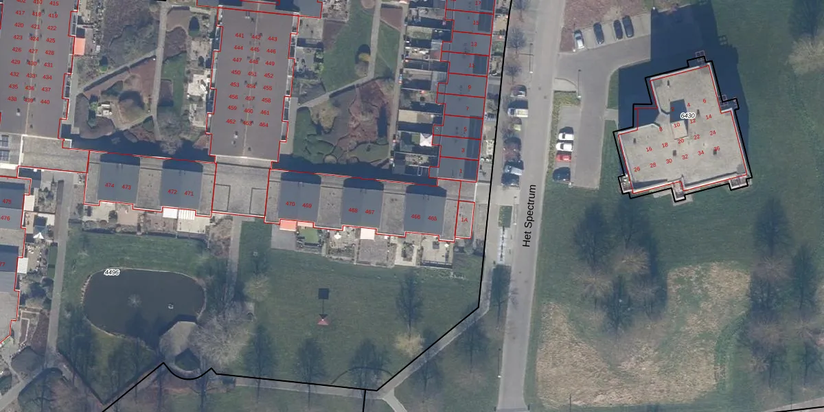Het perceel waarop De Regenboog 466 staat heeft een oppervlakte van 2,8 ha. Dit is een zeer groot perceel. De perceeloppervlakte wordt geregistreerd door het Kadaster. Gedetailleerde informatie over de maten van dit perceel kunt u vinden in het rapport Kadastrale kaart met maatvoering van De Regenboog 466.