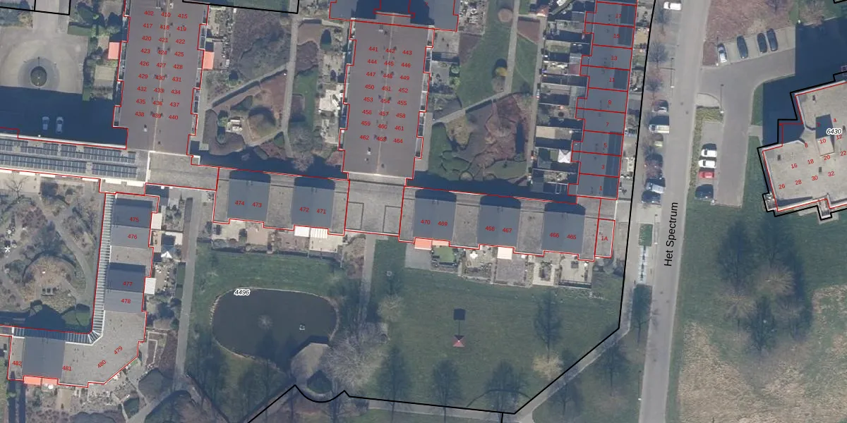 Het perceel waarop De Regenboog 470 staat heeft een oppervlakte van 2,8 ha. Dit is een zeer groot perceel. De perceeloppervlakte wordt geregistreerd door het Kadaster. Gedetailleerde informatie over de maten van dit perceel kunt u vinden in het rapport Kadastrale kaart met maatvoering van De Regenboog 470.