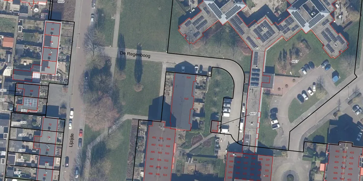 Het perceel waarop De Regenboog 515 staat heeft een oppervlakte van 2,8 ha. Dit is een zeer groot perceel. De perceeloppervlakte wordt geregistreerd door het Kadaster. Gedetailleerde informatie over de maten van dit perceel kunt u vinden in het rapport Kadastrale kaart met maatvoering van De Regenboog 515.