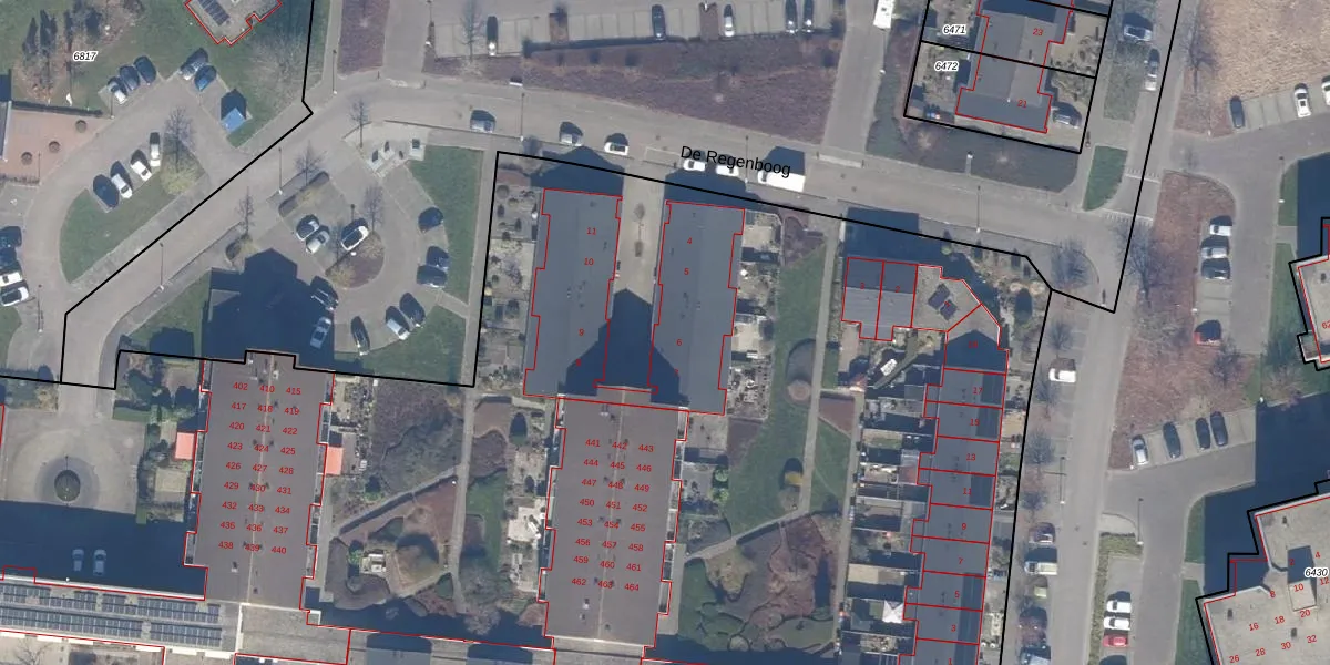 Het perceel waarop De Regenboog 6 staat heeft een oppervlakte van 2,8 ha. Dit is een zeer groot perceel. De perceeloppervlakte wordt geregistreerd door het Kadaster. Gedetailleerde informatie over de maten van dit perceel kunt u vinden in het rapport Kadastrale kaart met maatvoering van De Regenboog 6.