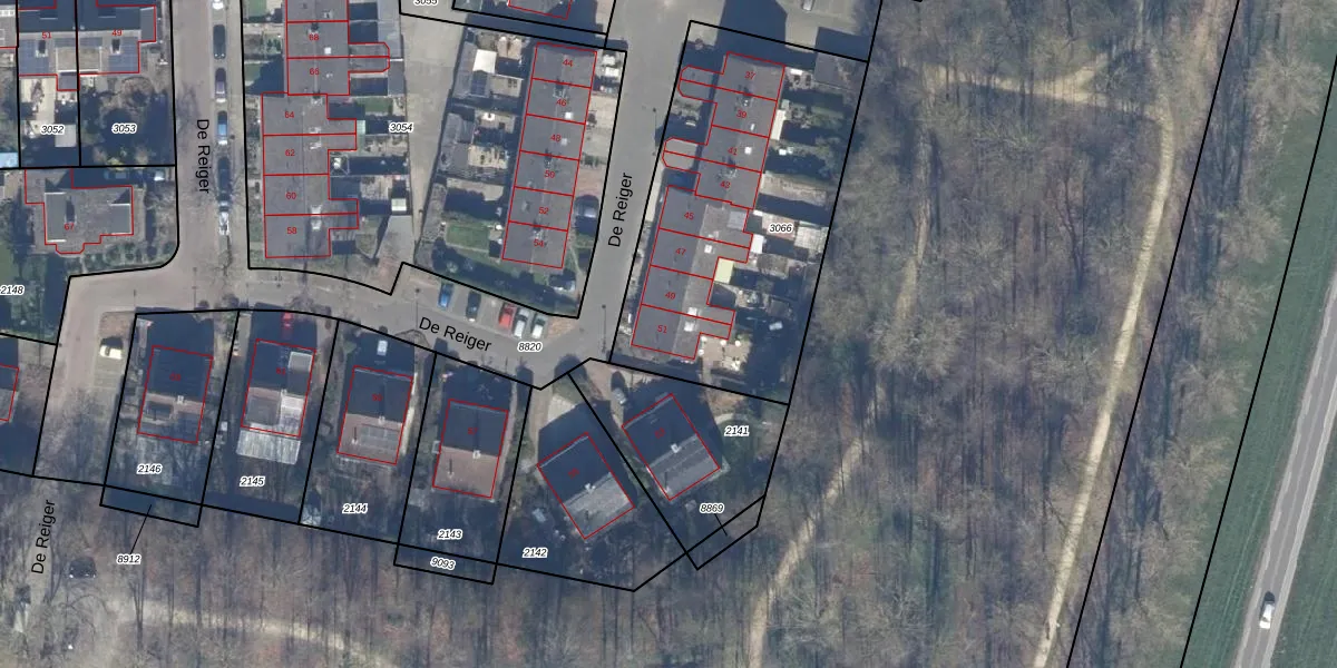 Het perceel waarop De Reiger 51 staat heeft een oppervlakte van 1451 m². Dit is een zeer groot perceel. De perceeloppervlakte wordt geregistreerd door het Kadaster. Gedetailleerde informatie over de maten van dit perceel kunt u vinden in het rapport Kadastrale kaart met maatvoering van De Reiger 51.