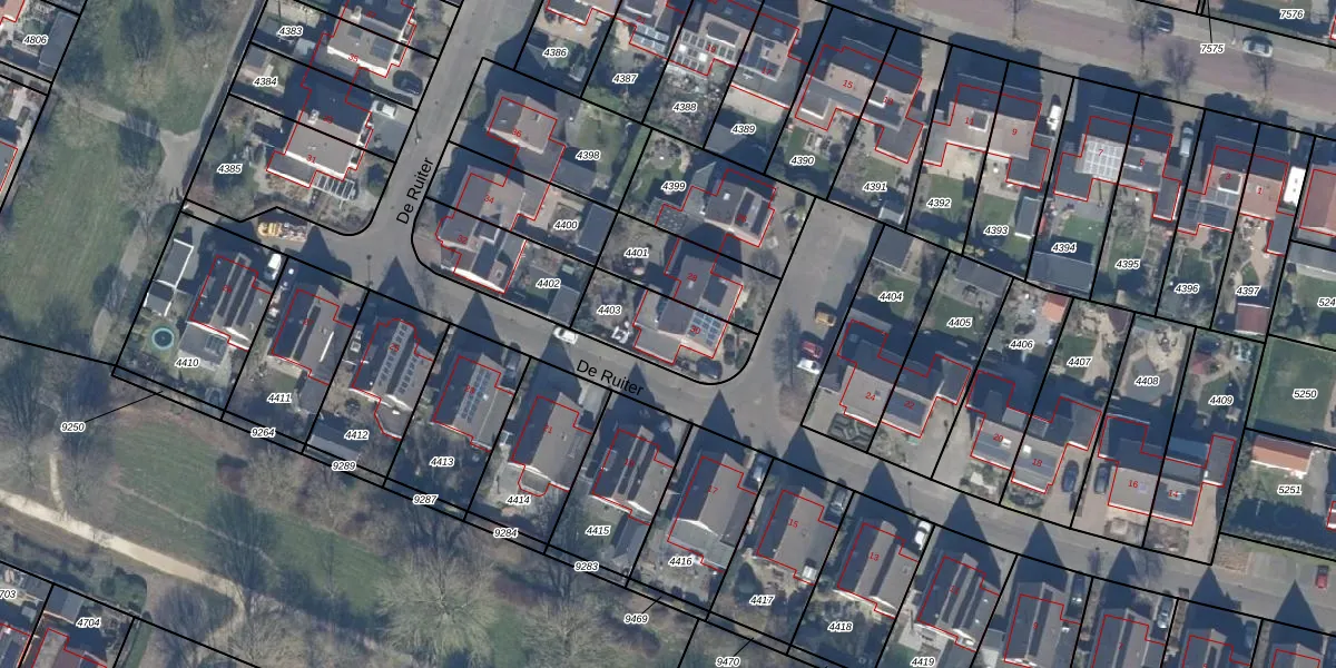 Het perceel waarop De Ruiter 30 staat heeft een oppervlakte van 257 m². Dit is een middelgroot perceel. De perceeloppervlakte wordt geregistreerd door het Kadaster. Gedetailleerde informatie over de maten van dit perceel kunt u vinden in het rapport Kadastrale kaart met maatvoering van De Ruiter 30.