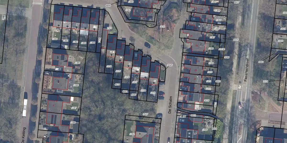 Het perceel waarop De Schalm 20 staat heeft een oppervlakte van 195 m². Dit is een middelgroot perceel. De perceeloppervlakte wordt geregistreerd door het Kadaster. Gedetailleerde informatie over de maten van dit perceel kunt u vinden in het rapport Kadastrale kaart met maatvoering van De Schalm 20.