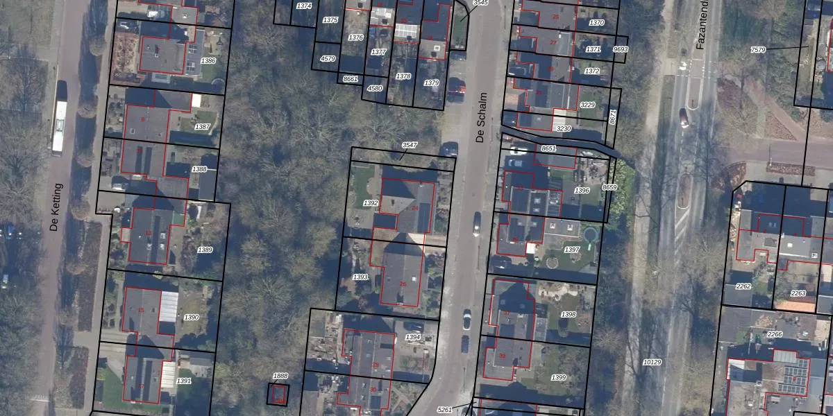 Het perceel waarop De Schalm 24 staat heeft een oppervlakte van 454 m². Dit is een groot perceel. De perceeloppervlakte wordt geregistreerd door het Kadaster. Gedetailleerde informatie over de maten van dit perceel kunt u vinden in het rapport Kadastrale kaart met maatvoering van De Schalm 24.