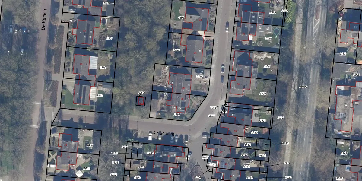 Het perceel waarop De Schalm 28 staat heeft een oppervlakte van 471 m². Dit is een groot perceel. De perceeloppervlakte wordt geregistreerd door het Kadaster. Gedetailleerde informatie over de maten van dit perceel kunt u vinden in het rapport Kadastrale kaart met maatvoering van De Schalm 28.